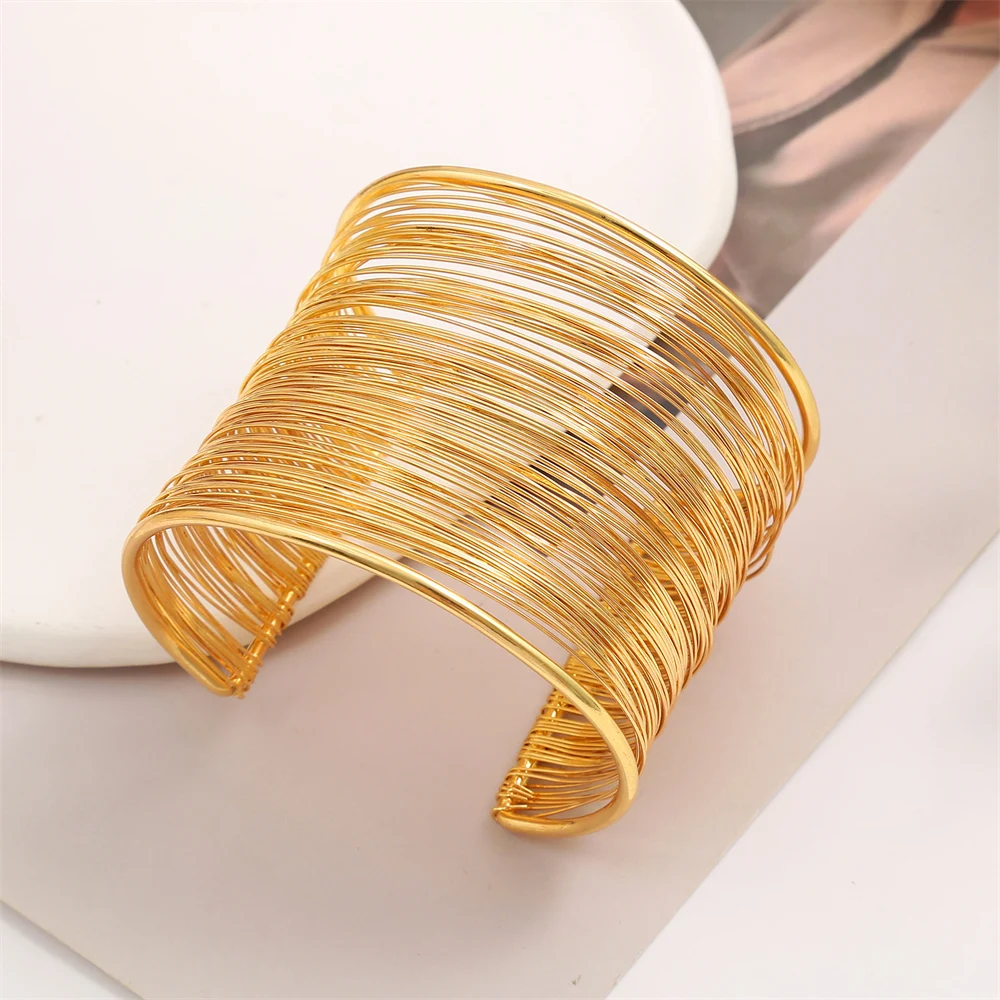 Vintage Hyperbolic Punk Layered Gold Plated Wide Wire Bracelet Cuff Bangle for Women Exaggerated Wrist Wrap Bangle Hand Jewelry Gift